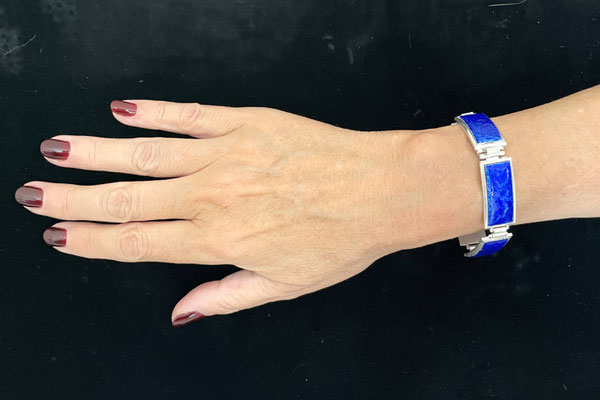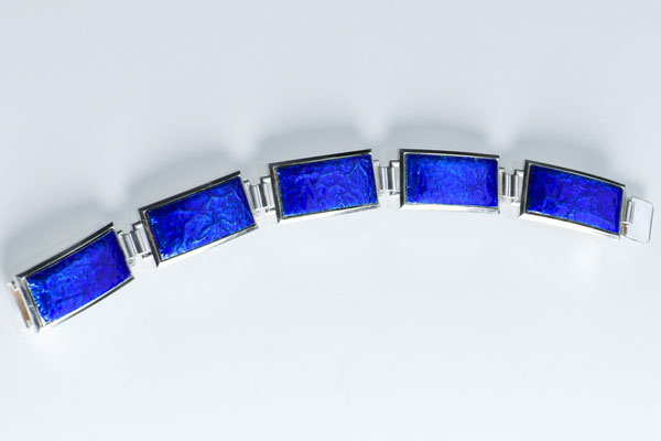 Vintage Unikat: Silberarmband mit blauem Emaille