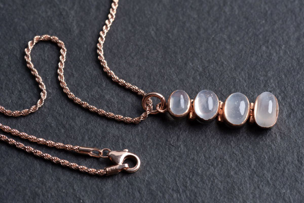 vier ovalen Mondstein Cabochons