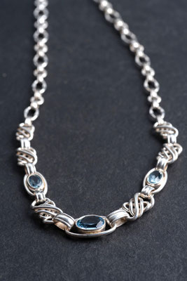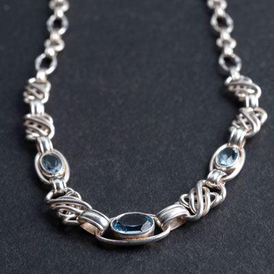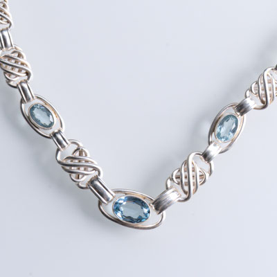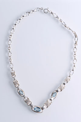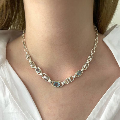 Elegantes Vintage-Collier besetzt mit ovalen, facettierten Glassteinen in klarem Hellblau.