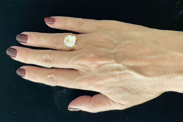 Der Stein hat ein leichtes „Spiel“: Er sitzt ganz sicher in der Fassung, lässt sich aber bei Druck leicht bewegen.