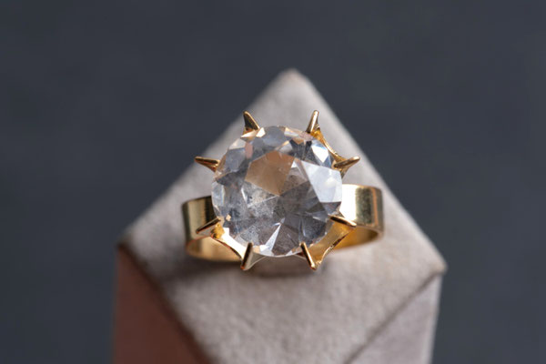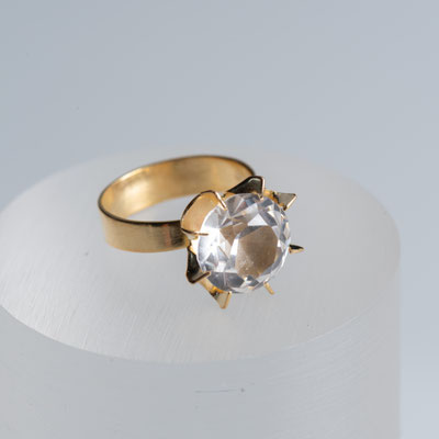 Wunderschöner Vintage-Solitär Ring mit großem Bergkristall