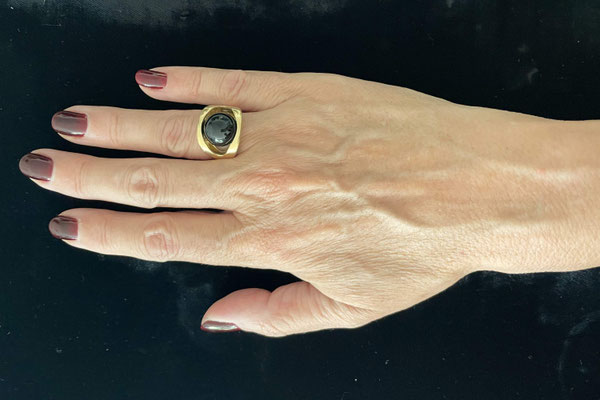 Markanter 70er-Jahre Ring mit schwarzer Onyx-Kugel