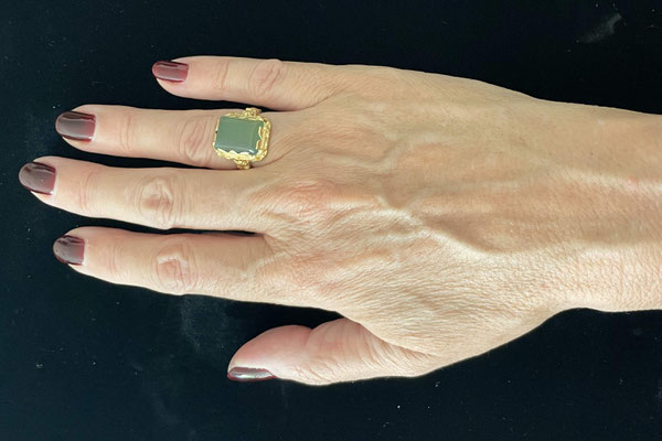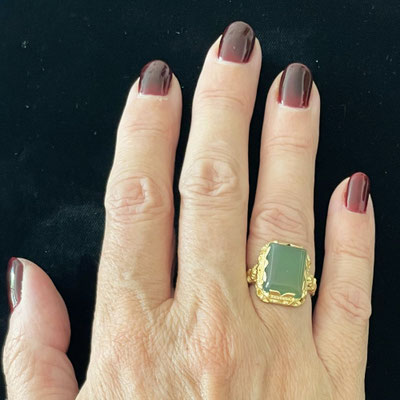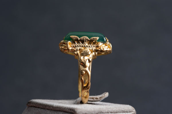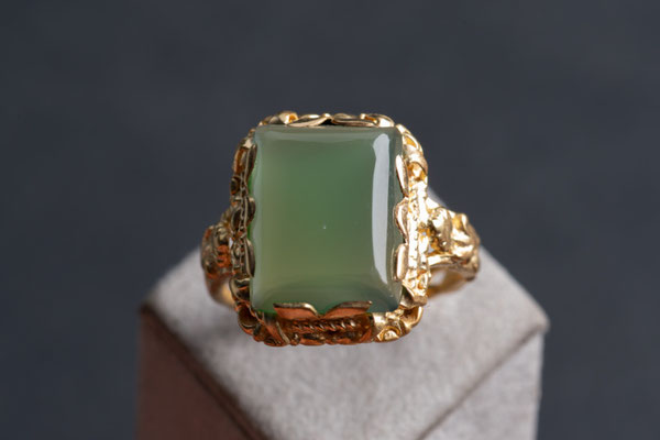 Fantastischer Ring mit einem rechteckigen Chrysopras Cabochon.