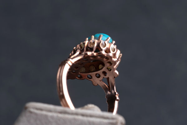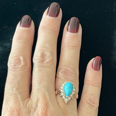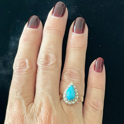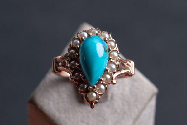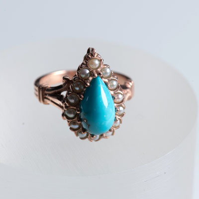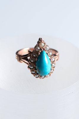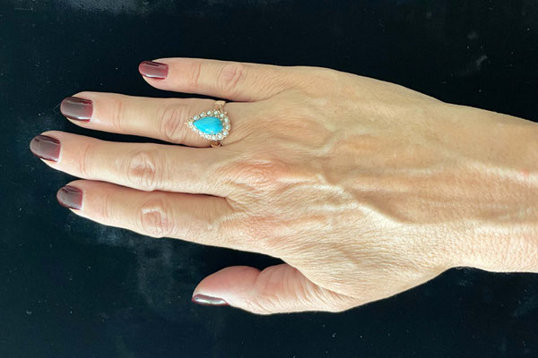 Bezaubernder Ring mit einem tropfenförmigen Türkis-Cabochon